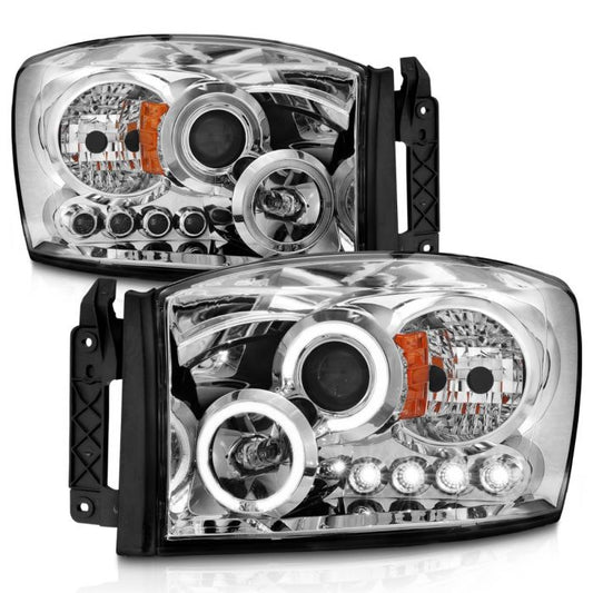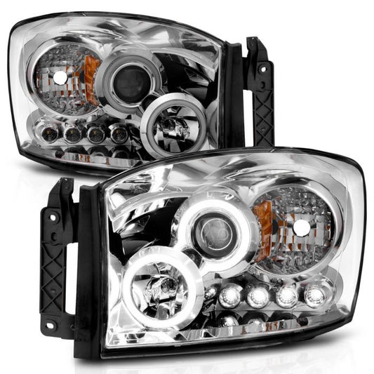 ANZO - 2006-2008 RAM 1500/2500/3500 PROJECTOR HEADLIGHTS WITH HALOS AND CHROME HOUSING