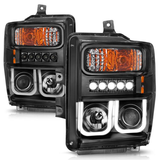 ANZO - 2008-2010 FORD SUPER DUTY PROJECTOR HEADLIGHTS WITH U-BAR AND BLACK HOUSING