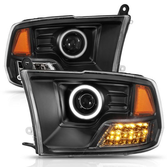 ANZO - 2009-2018 RAM 1500/2500/3500 PROJECTOR HEADLIGHTS BLACK WITH RX HALO