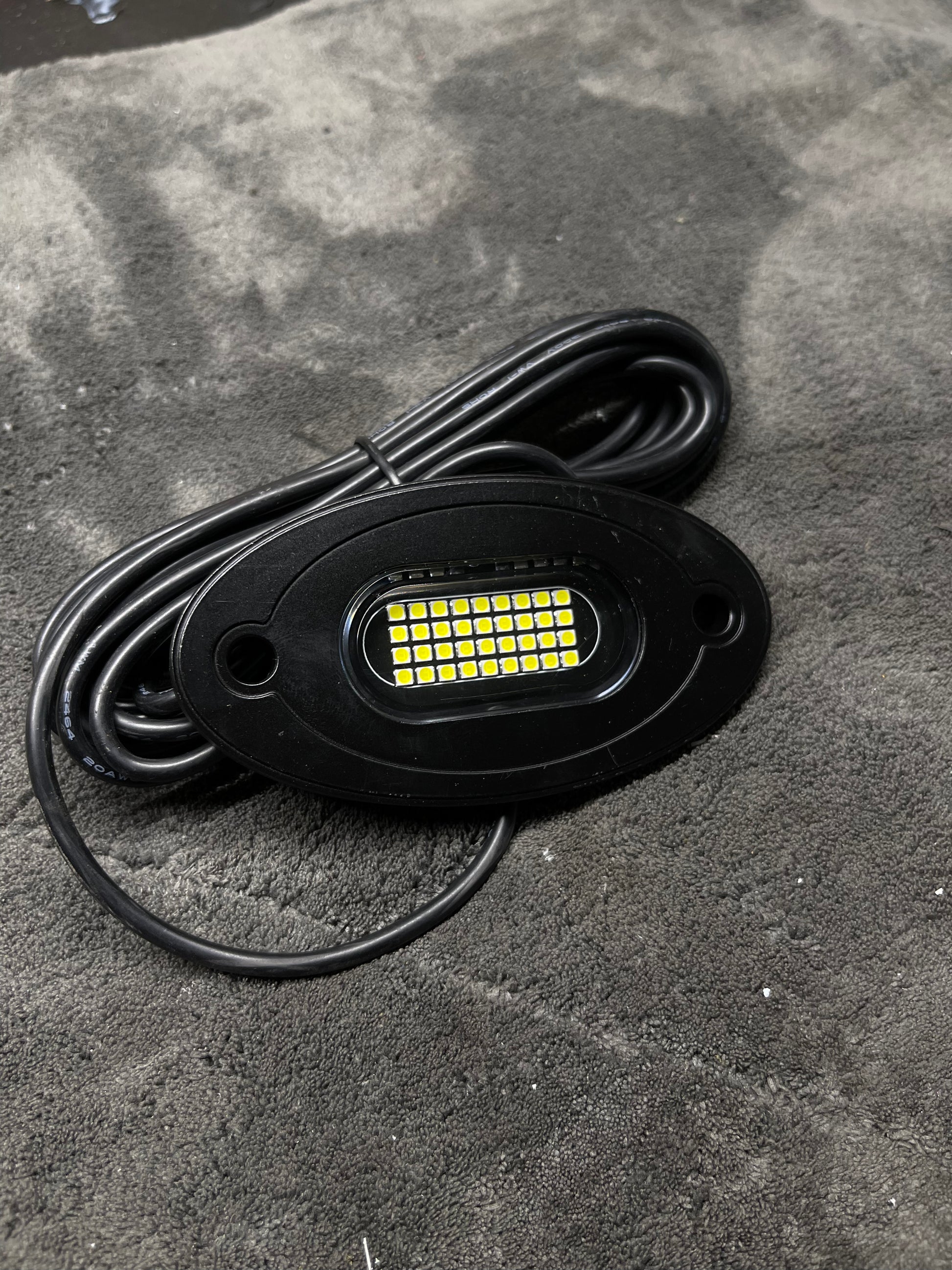 High Intensity 36LED Rock Light! Bright and pure white, this light offers a range of strobing/flashing functions as a add on with our harness options!