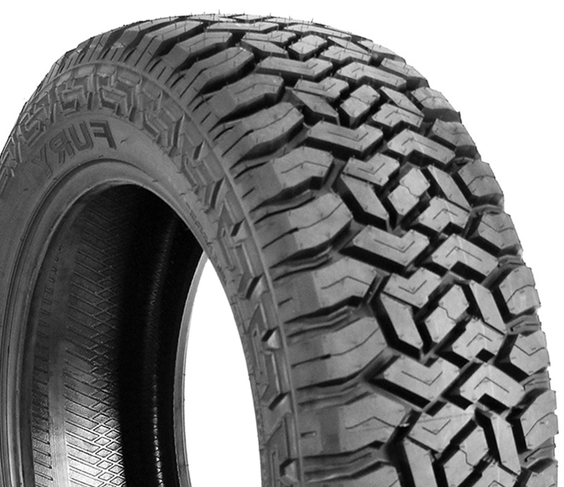 A rough terrain tire, the Fury Country Hunter R/T is designed for use on Jeeps, light trucks, and SUVs that need performance on and off road. The Country Hunter R/T's aggressive tread pattern and stone ejectors make it an ideal choice for use in mud, dirt, and other off road terrains, and the tire's optimized design makes it a solid choice for on highway driving thanks to its ability to reduce road noises and improve ride comfort.