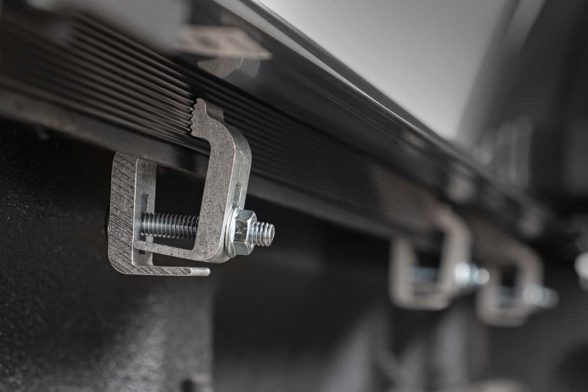 Installation. With an estimated time frame of ten minutes for installation, covering your cargo takes no time! Simply install the supplied bracket system to your factory bed rail, and secure the cover to the railing and you're officially covered!