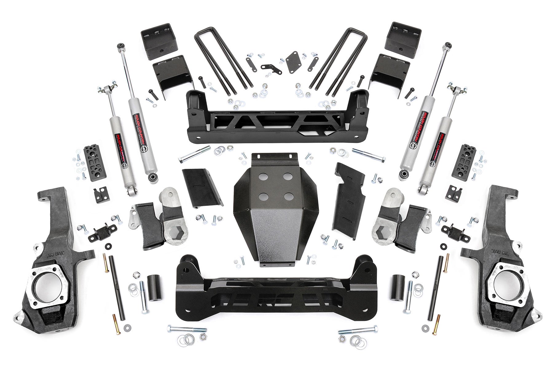 Right off the lot The GM 2500 HD has an impressive stance and a killer look, inspiring Rough Country to build a kit that would add crucial enhancements while taking nothing away from this sharp looking, new model truck. The 5" N3 Suspension Lift for GM 2500 HD features a Non-Torsion Drop Design for better clearance and handling while maintaining proper angles in a "clean and tucked away" fashion. This kit also features Heavy Duty components worthy of the HD badge; With 1/4" thick steel crossmembers, 1/2" thick NTD Brackets, and a durable, thick Skid Plate - all laser-cut and powder coated in our "Hammer Black" color to match the factory components. Installation requires no drilling or modifying the differential, meaning no "invasive" mods to your new toy.