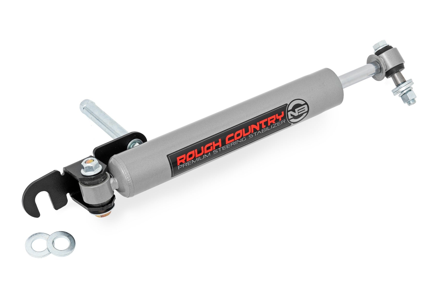 Superior Design and Comfort. Give yourself peace of mind when upgrading to a larger wheel and tire setup with Rough Country's N3 stabilizers! Steering stabilizers are designed to restrain "bump steer" and front-end vibration, giving added life to tires, ball joints, and other steering components. Rough Country's N3 stabilizers improve the overall driving experience by providing precise dampening and raising the vehicle's overall comfort and functionality.